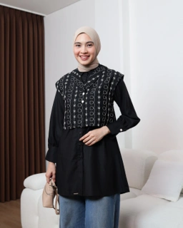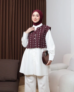 Zysku Xena | Verena Shirt Set - 4 Warna | Set Kemeja Basic Vest Rompi Lengan Panjang Tunik Polos