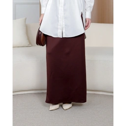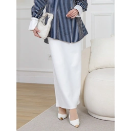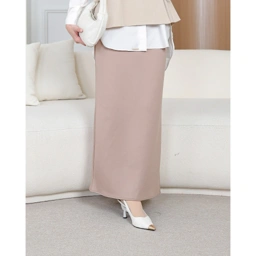 Features: Pinggang belakang karet, saku di kiri kanan. Potongan rok span / column skirt.