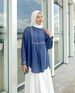 Kemeja bordir denim oversize allsize lengan panjang wanita